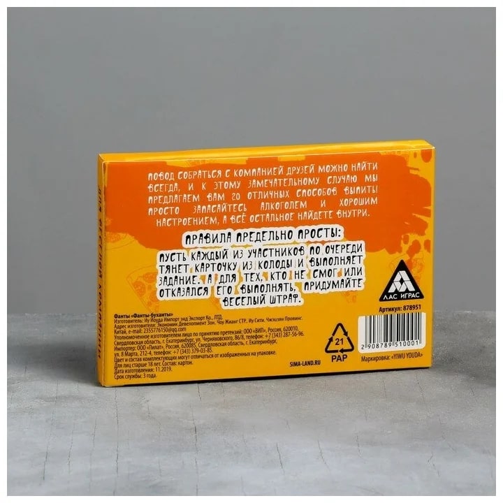 Купить игра для компании "фанты буханты" 20 карт от 100 руб. с доставкой до пункта выдачи в Бавлах. Интернет магазин ДекаМаркет. Оплата при получении.