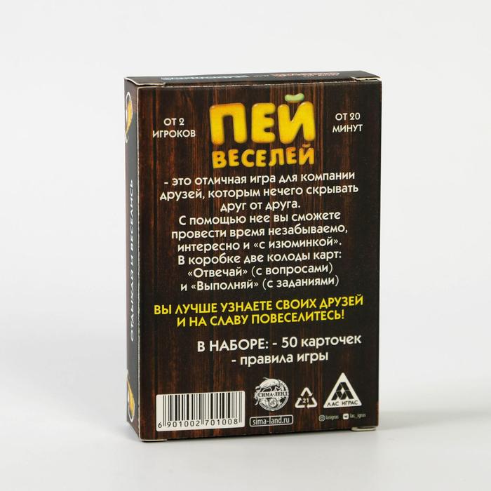 Купить игра для компании "пей веселей" 50 карт от 180 руб. с доставкой до пункта выдачи в Бавлах. Интернет магазин ДекаМаркет. Оплата при получении.