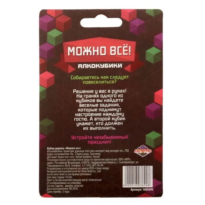 Купить кубик "можно все", алкокубики для принятия решений от 60 руб. с доставкой до пункта выдачи в Бавлах. Интернет магазин ДекаМаркет. Оплата при получении.